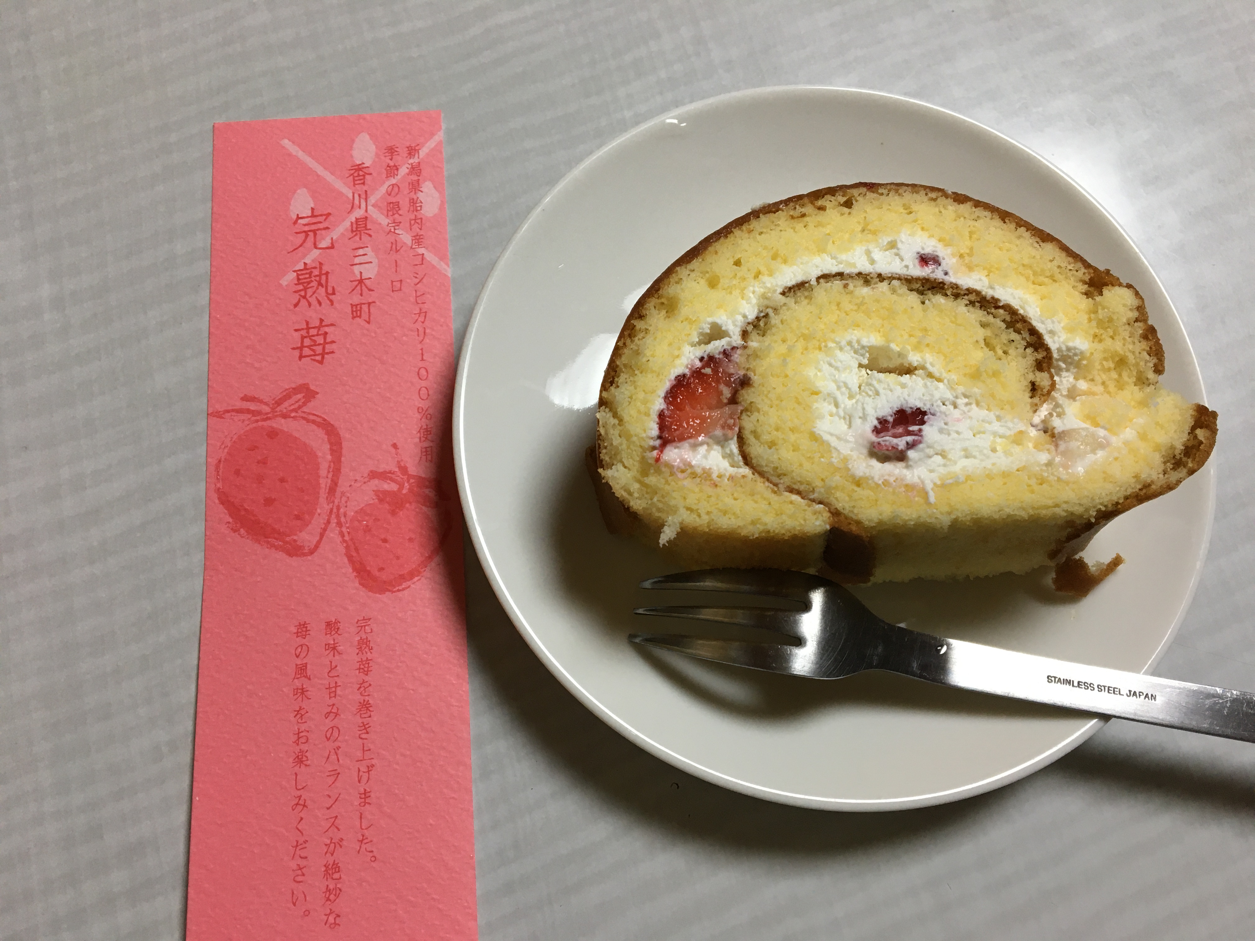 嫁さんと娘が大好きな苺のケーキで食べやすいのがいいと思ってロールケーキをチョイス