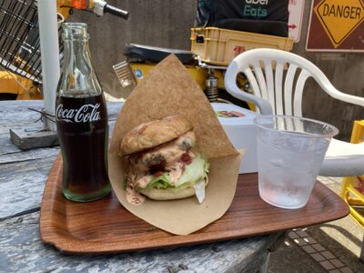 バタバタさんでは注文入ってから作ってくれるハンバーガーがあるんですよ、コレ食べにきました!出来立てのハンバーガー最高に美味しい!瓶のコーラといいええわ~(*´▽`*)