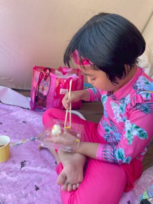 夏休み中のプールは大混雑なので昼ご飯も早めに頂きます