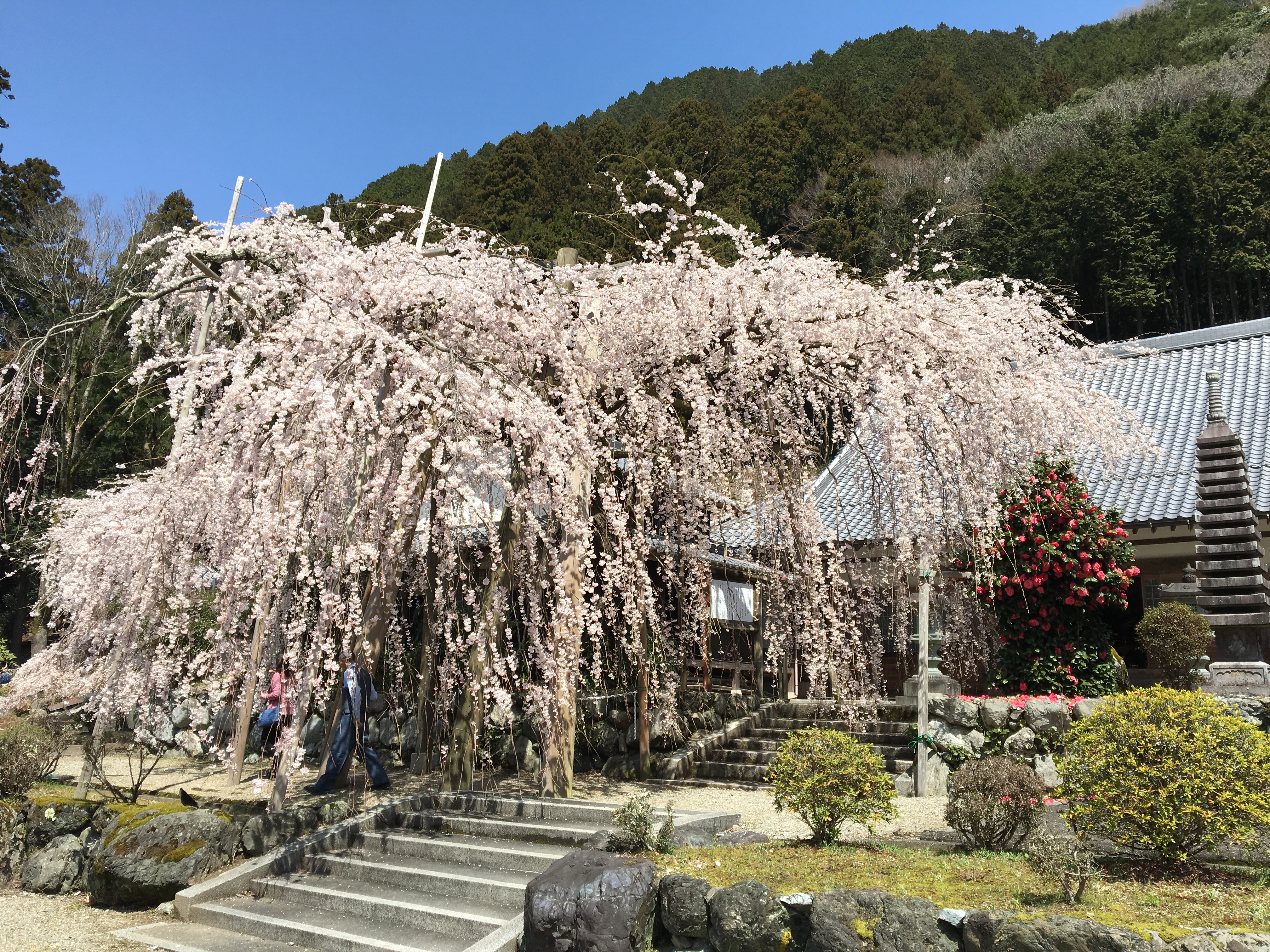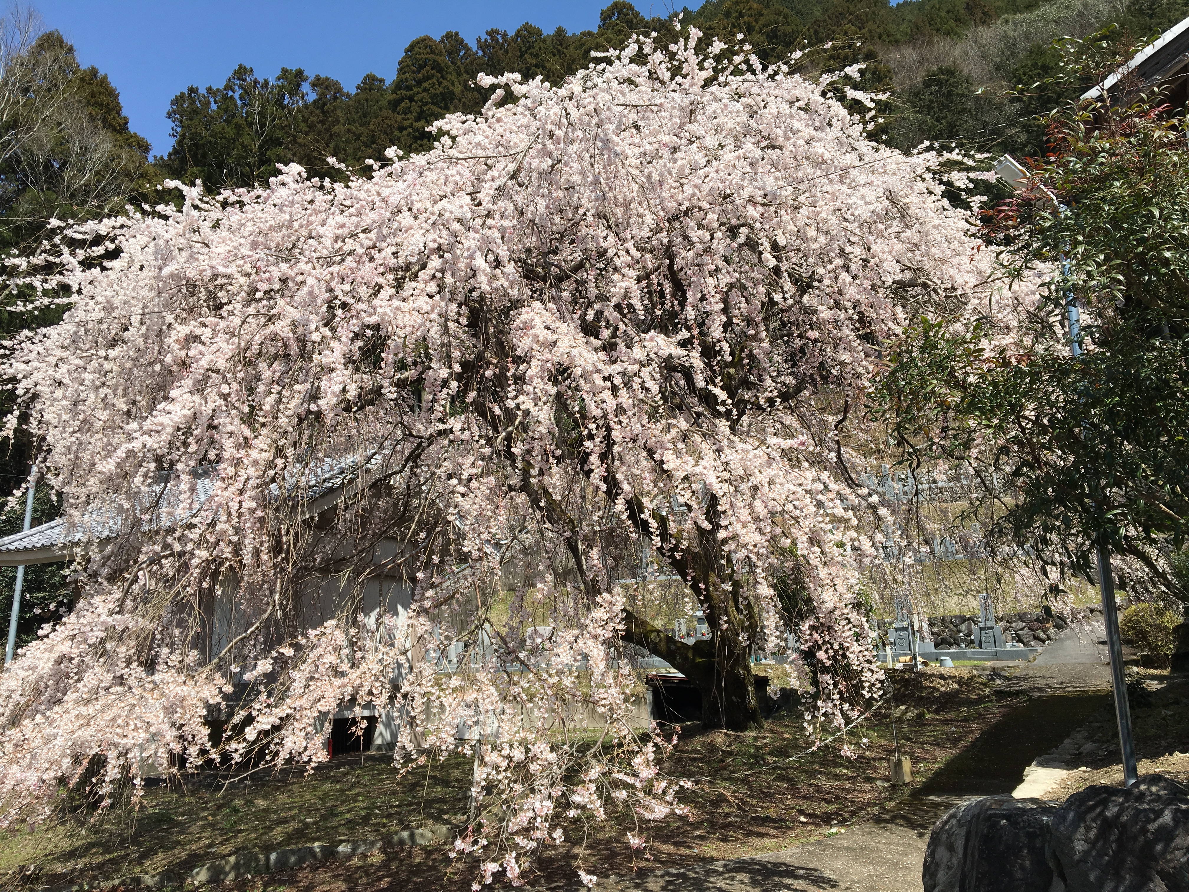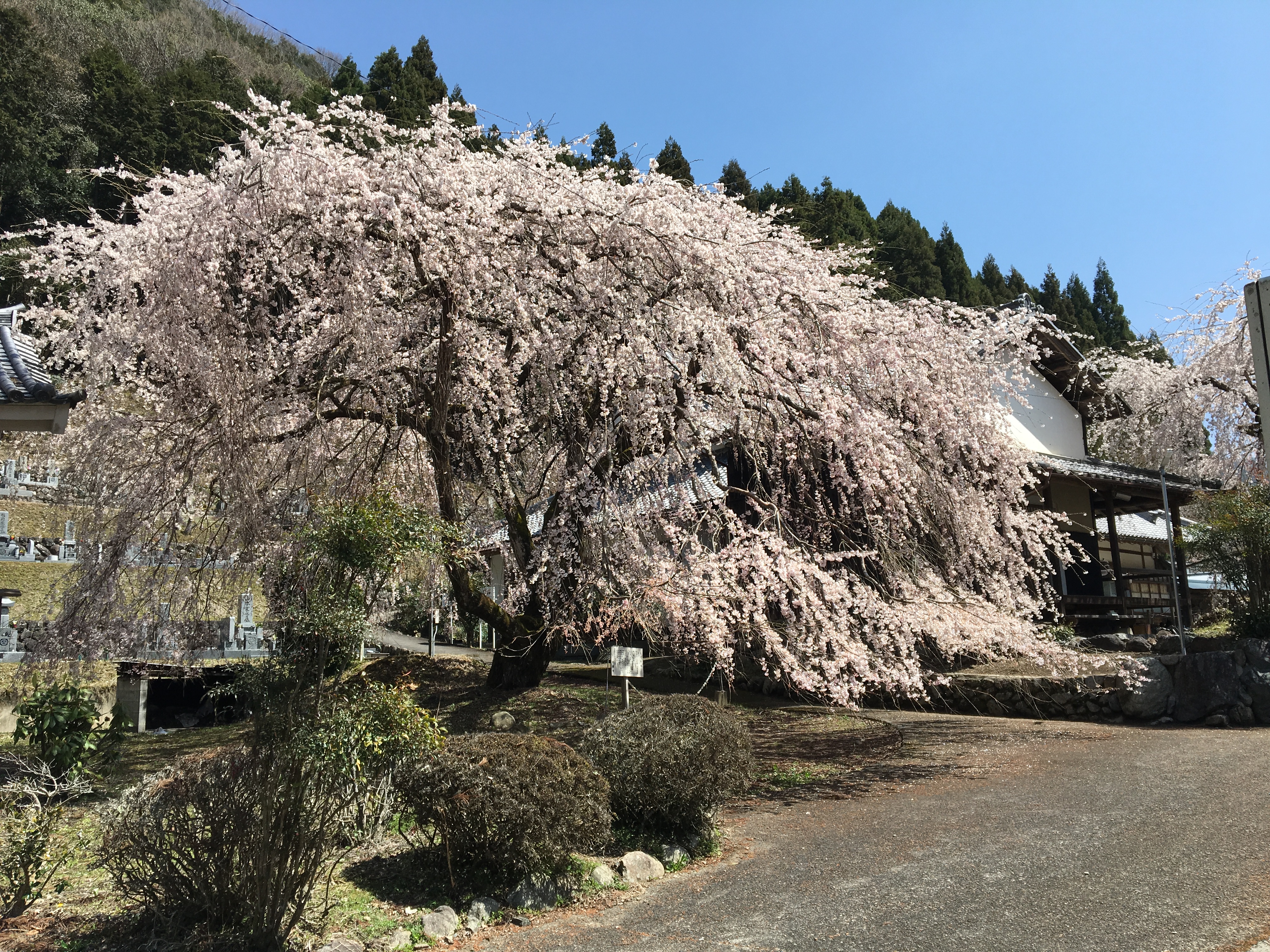 又兵衛桜から166号線を少し走ると、お寺の境内に枝垂れ桜が!