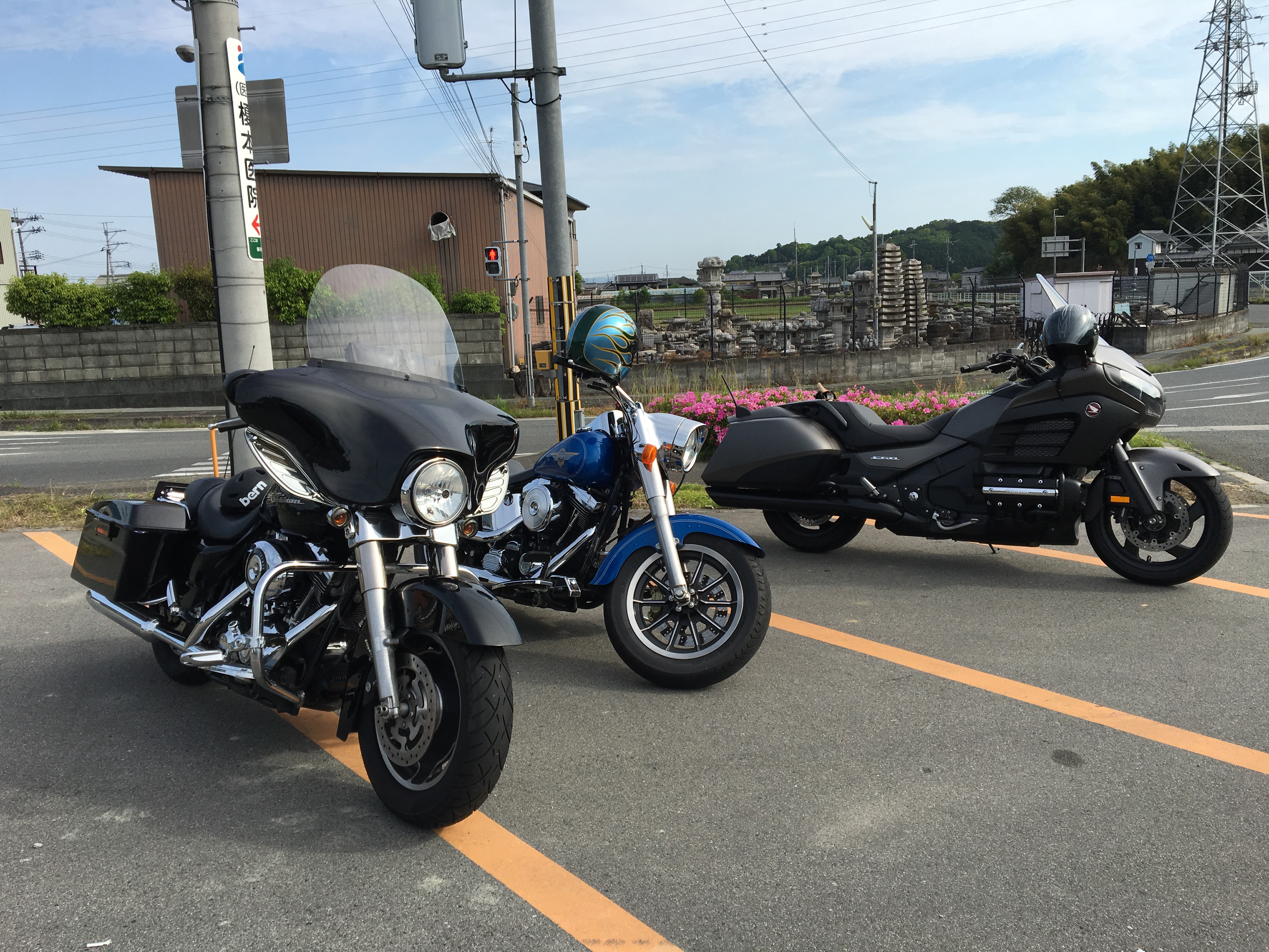 バイクは手前からF6B・FLSTF・FLHTC
