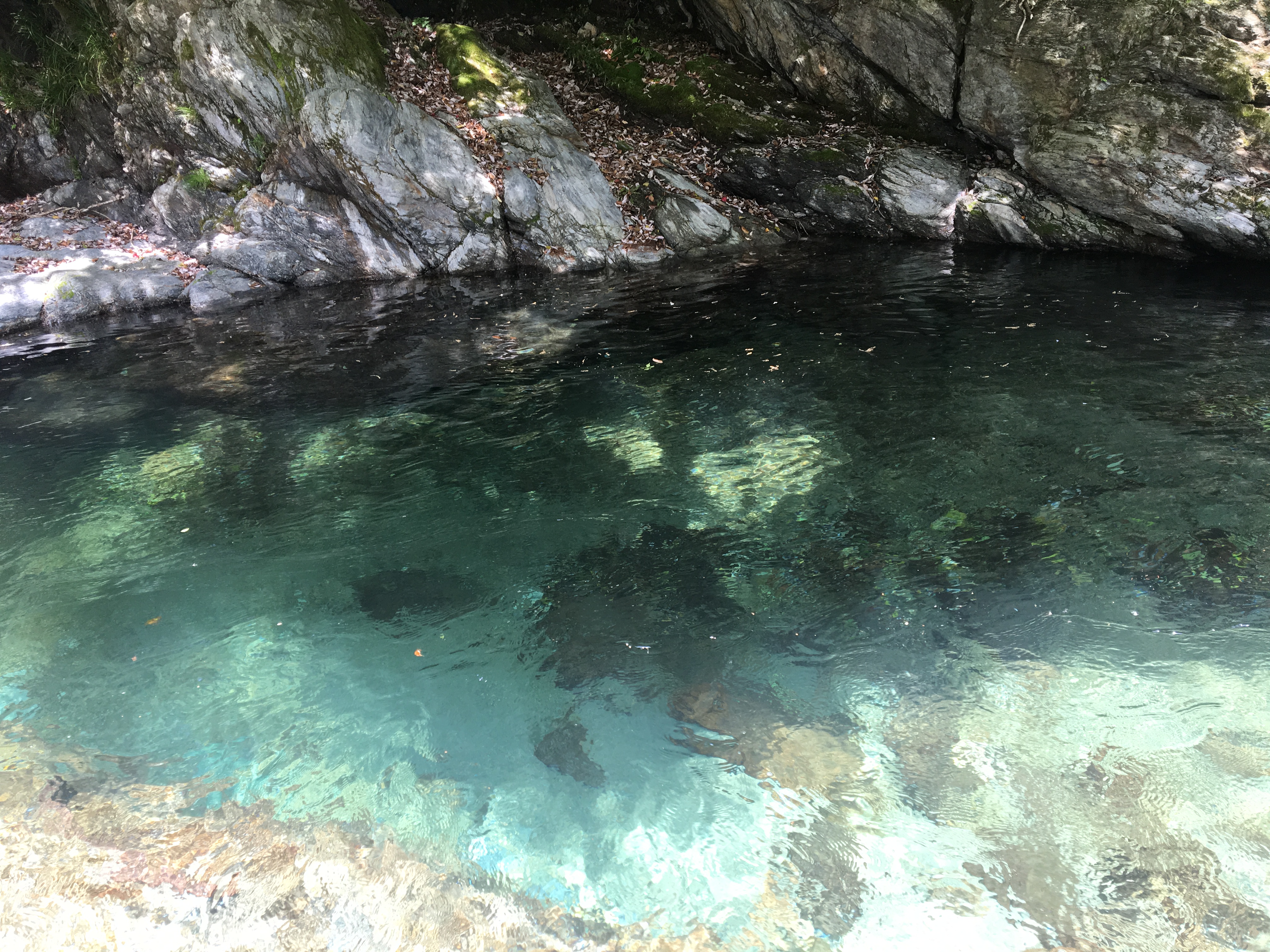 透き通ってるんですが少し離れるとエメラルドグリーンのような色