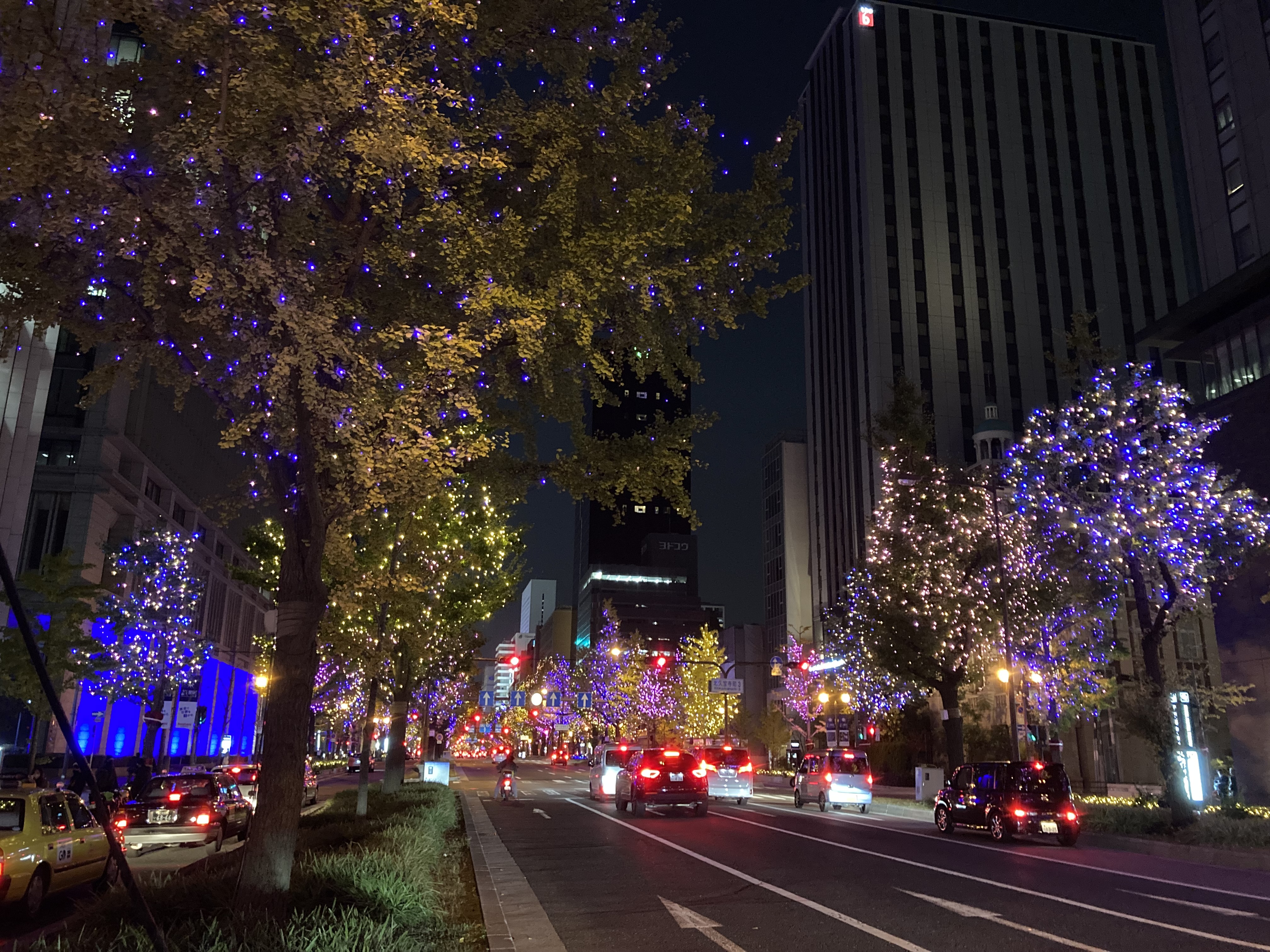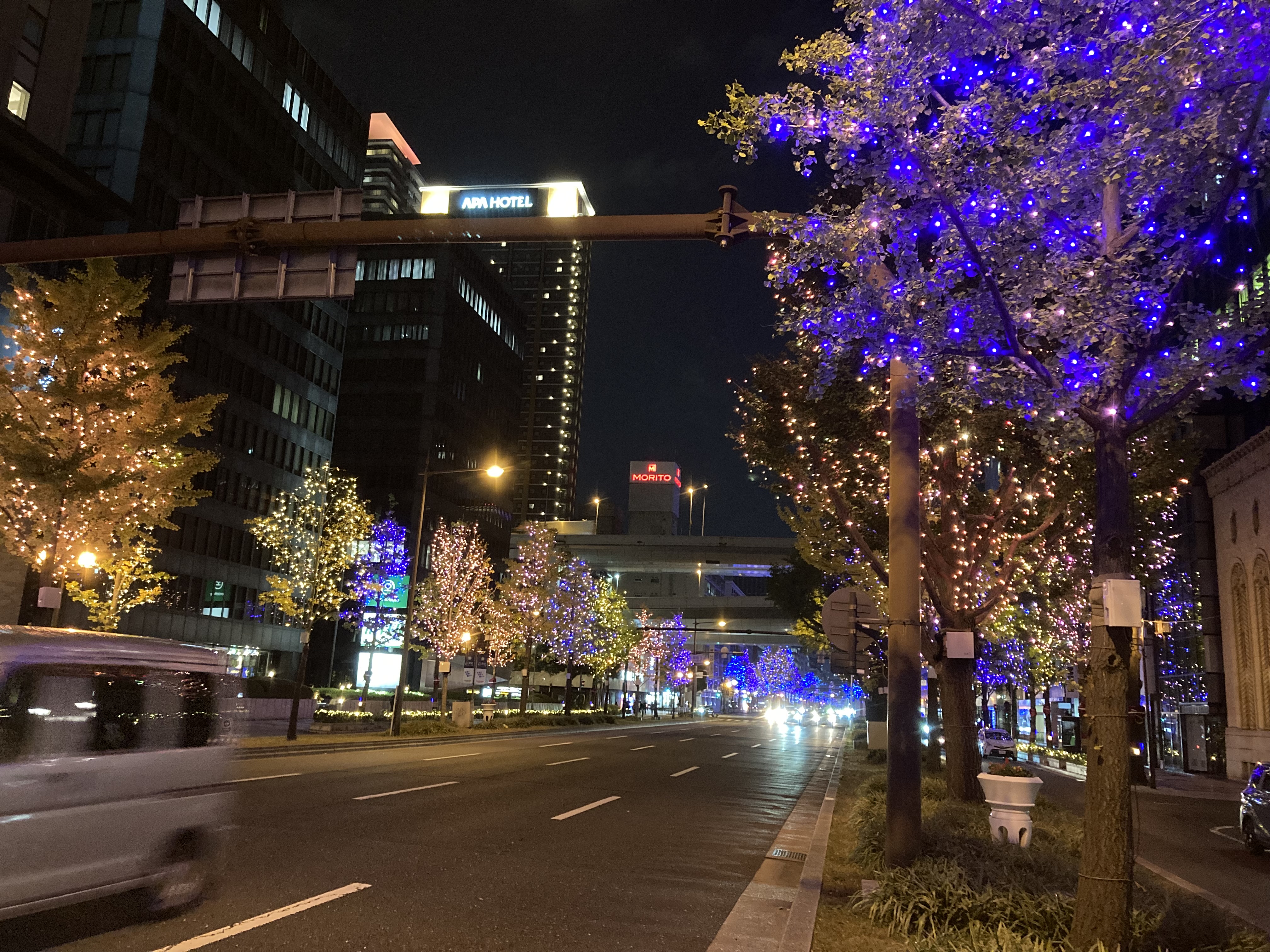 ラーメン食べ終わり御堂筋のイルミネーションへ
