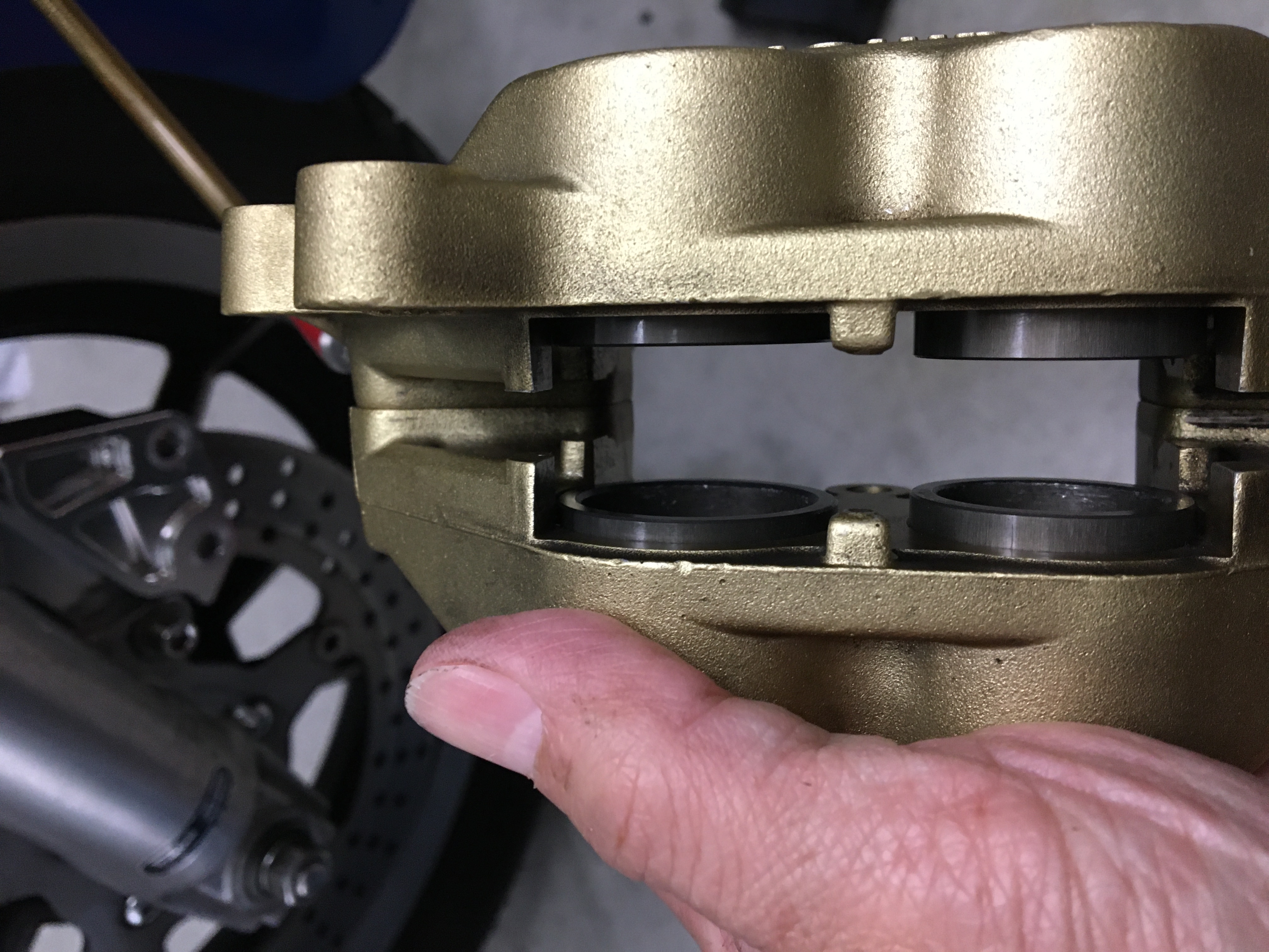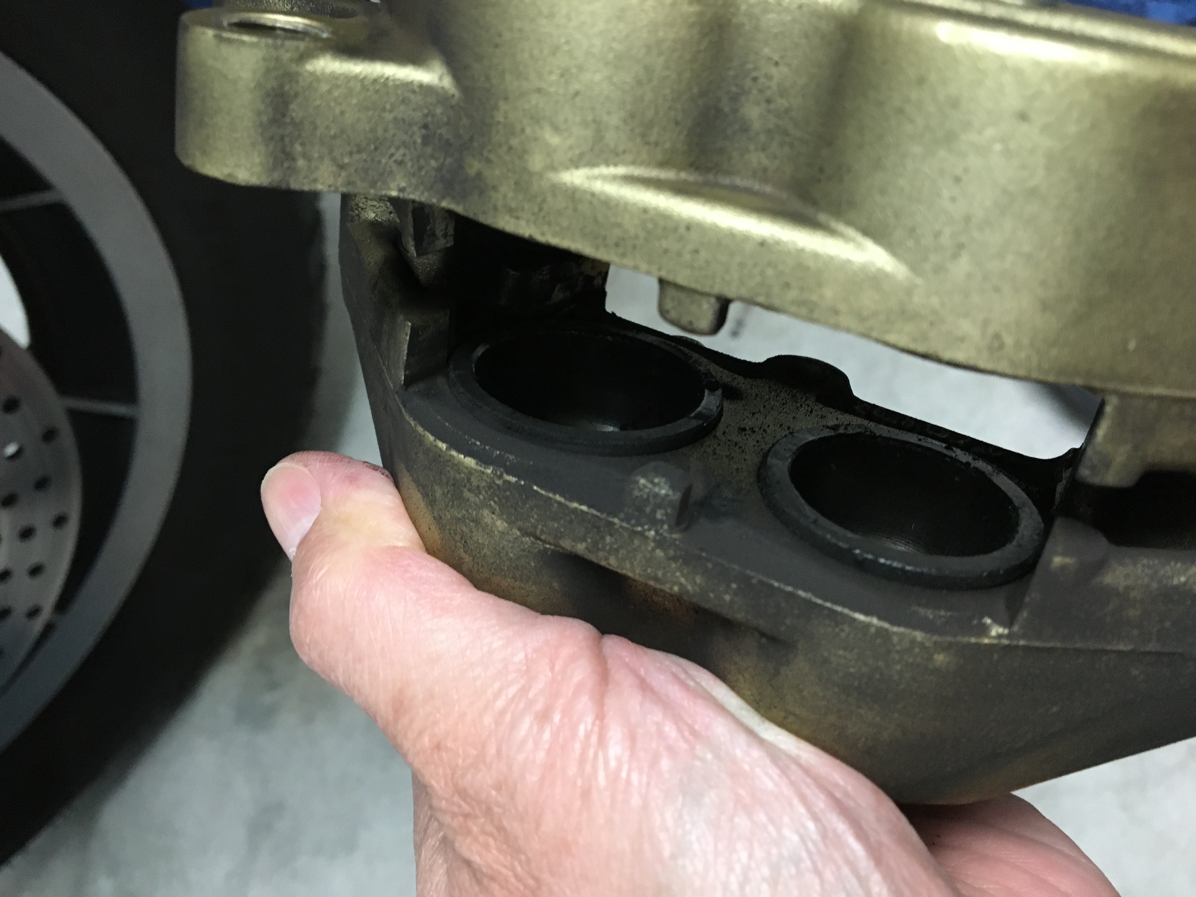 中性洗剤で丸洗い後に歯ブラシで内部を綺麗に洗いツール使ってキャリパーピストン動かして洗浄、ピストンに専用グリス塗って馴染ませて終了(^o^)