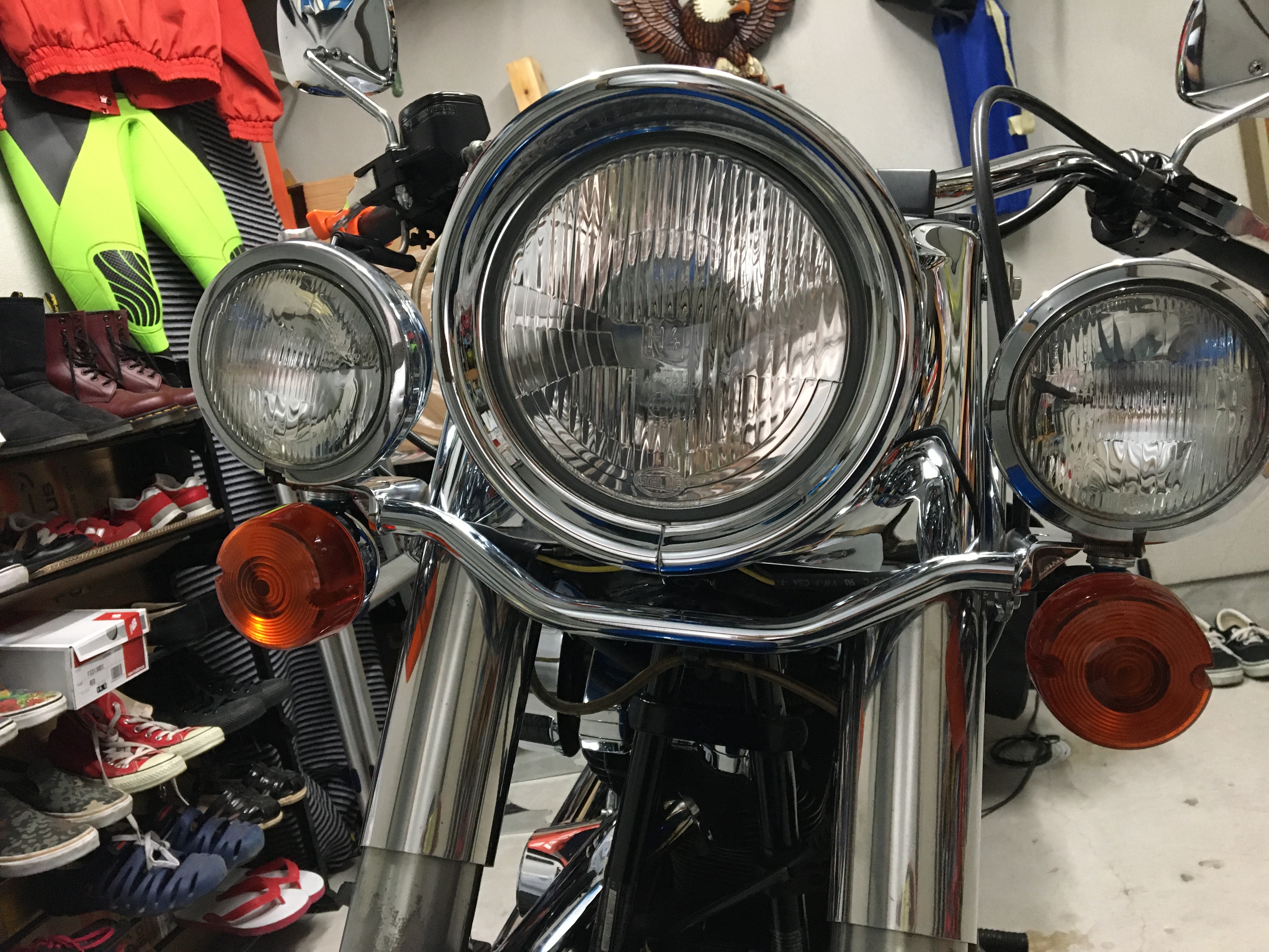 ファットボーイのメンテナンス終わって次は休業前からボチボチ作業してたフォグランプの再取り付けを(^o^)