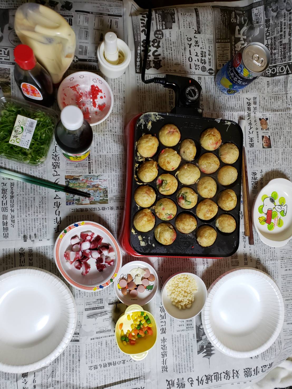 仕事の日は店で昼ご飯食べてて2週間も家で家族3人一緒に食べる事なんか無かったので何を食べるか決めるの大変ですよね・・・・・って事で休業中にもう1回たこ焼きしました(≧▽≦)