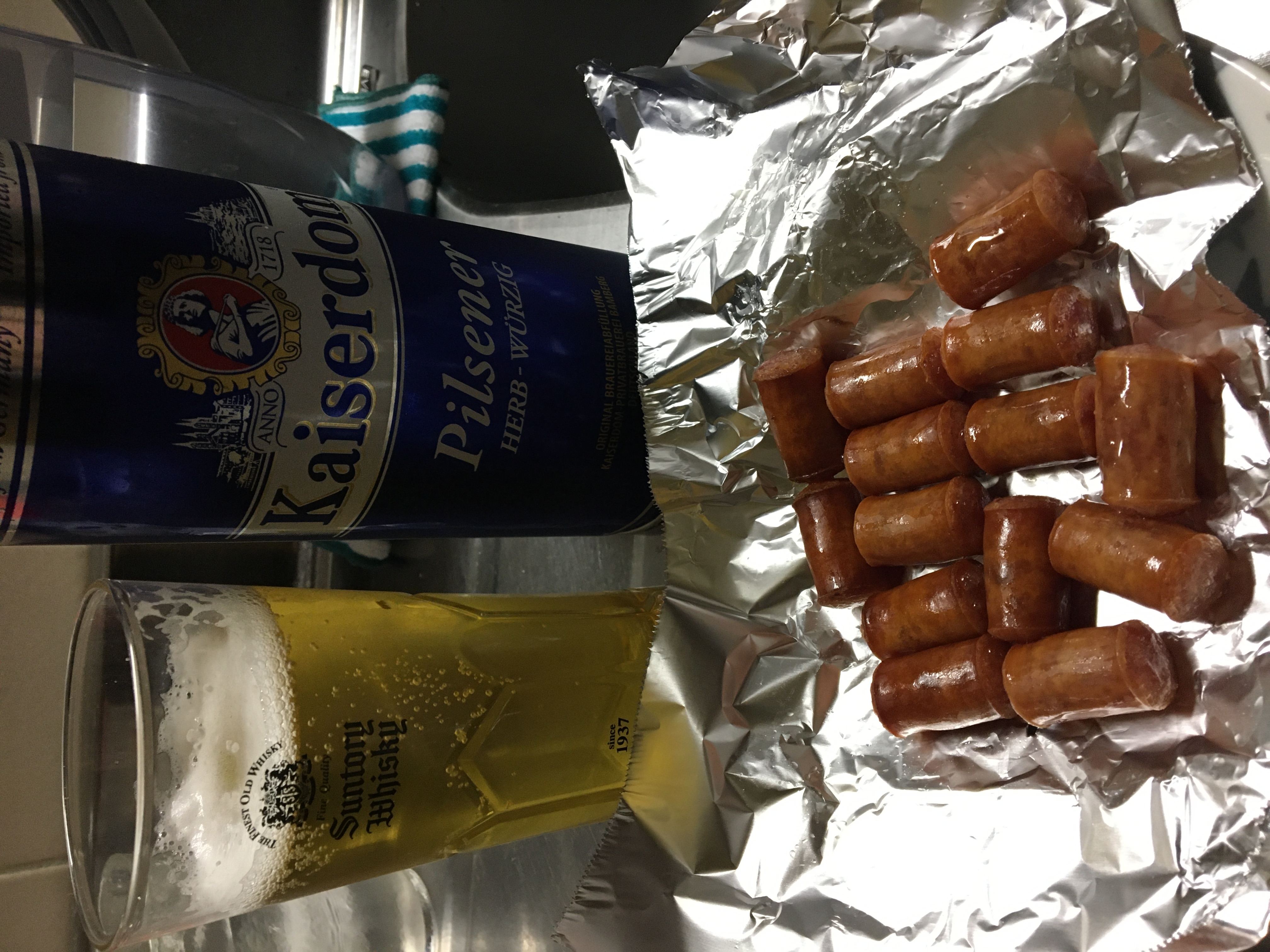 色々アテ用意して青の缶から飲んでみます