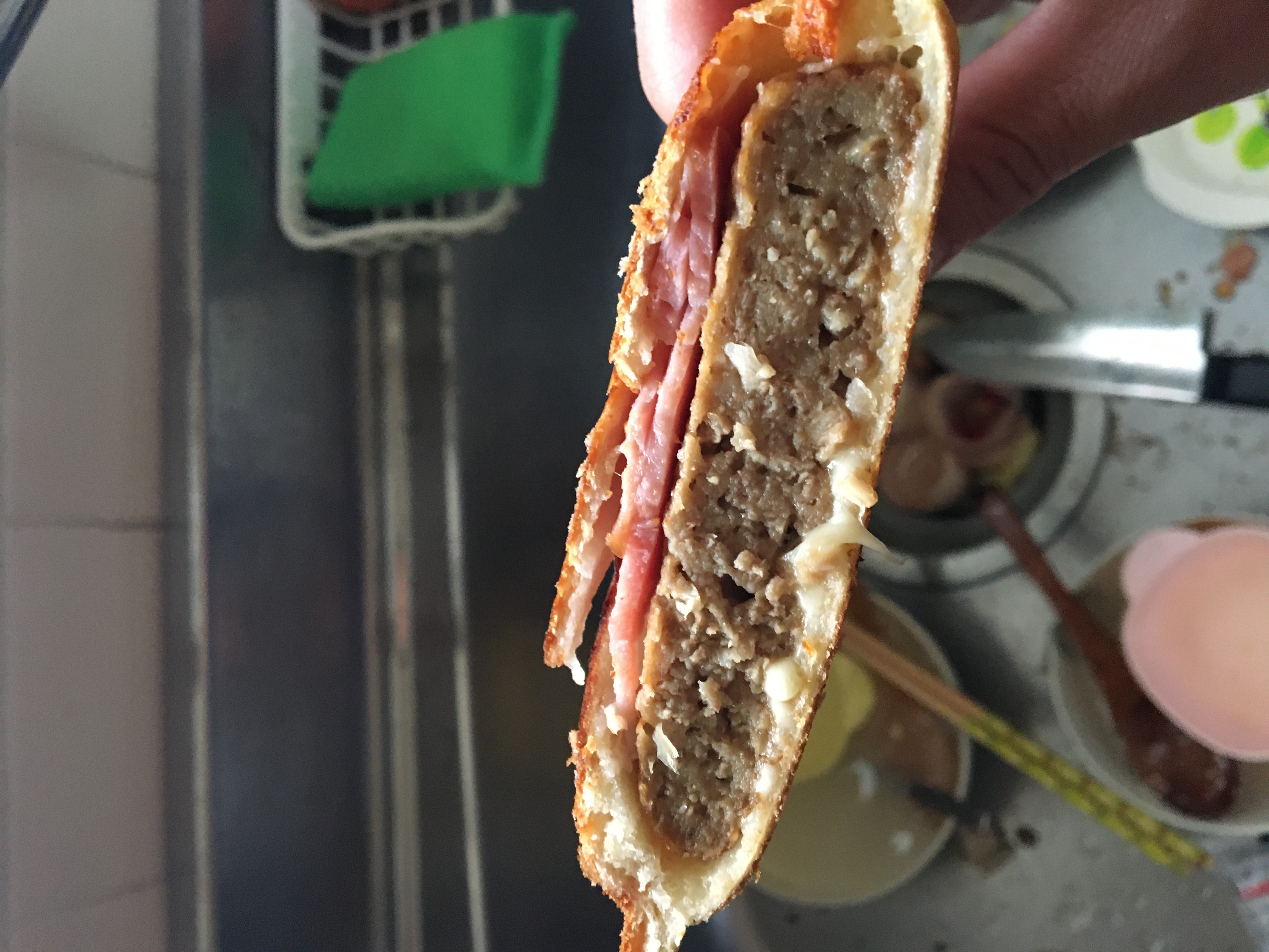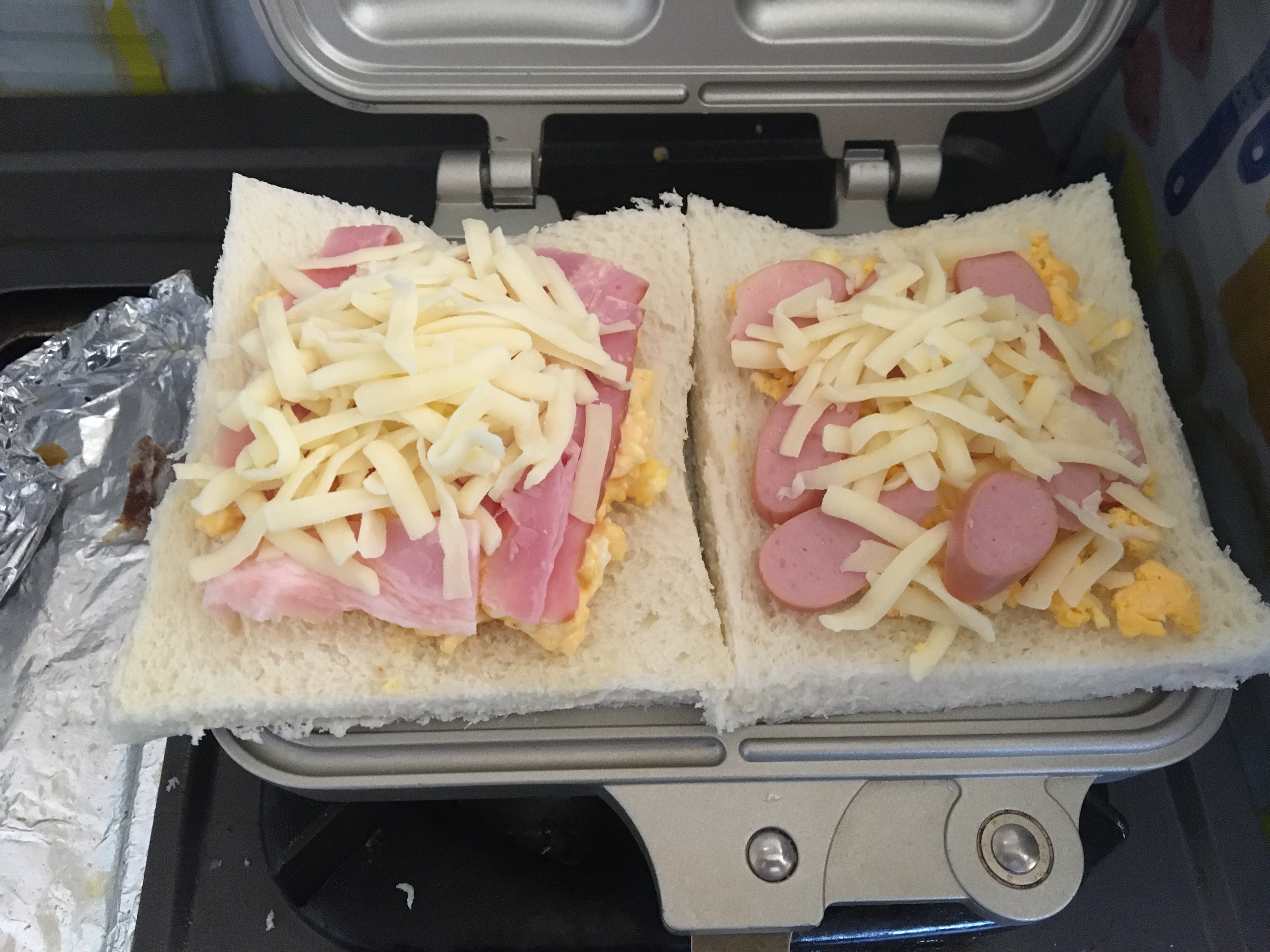 こんな感じで具材をたっぷり乗っけて挟んで焼く
