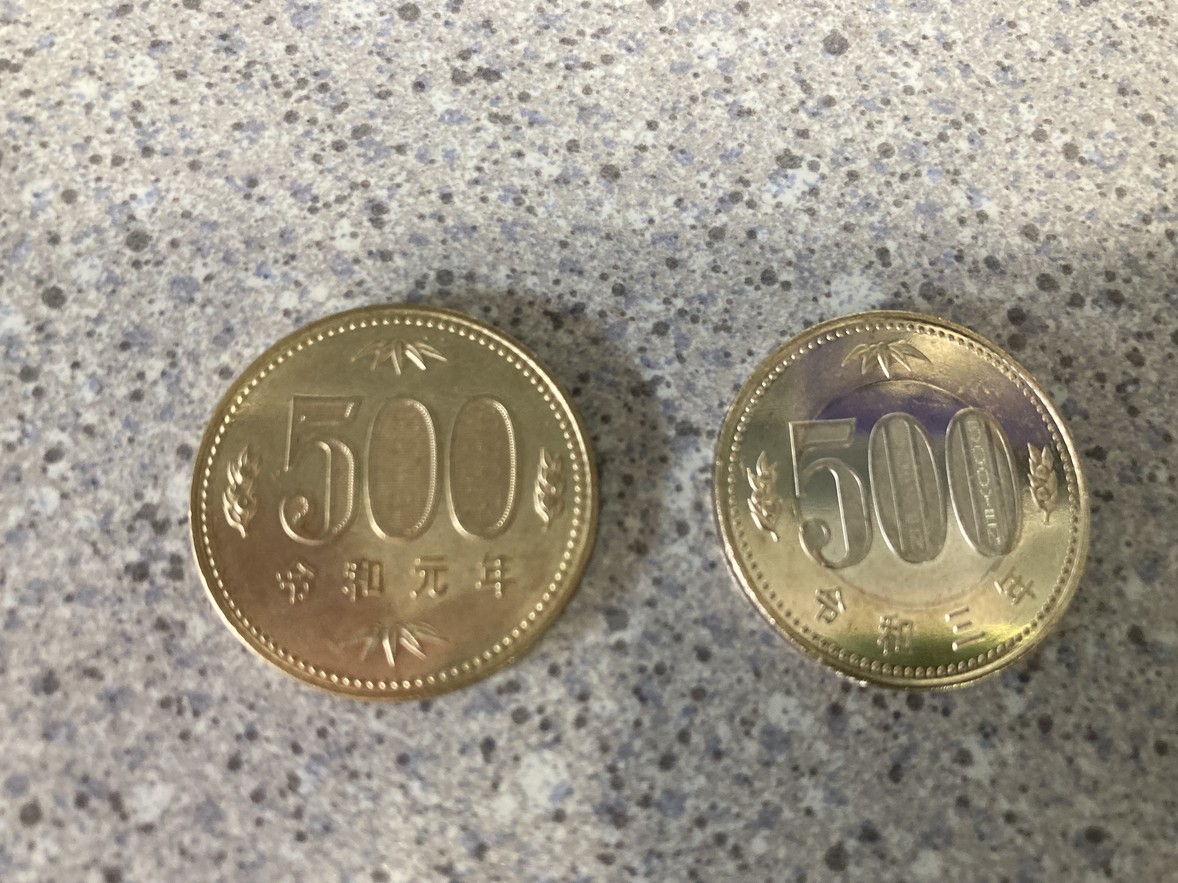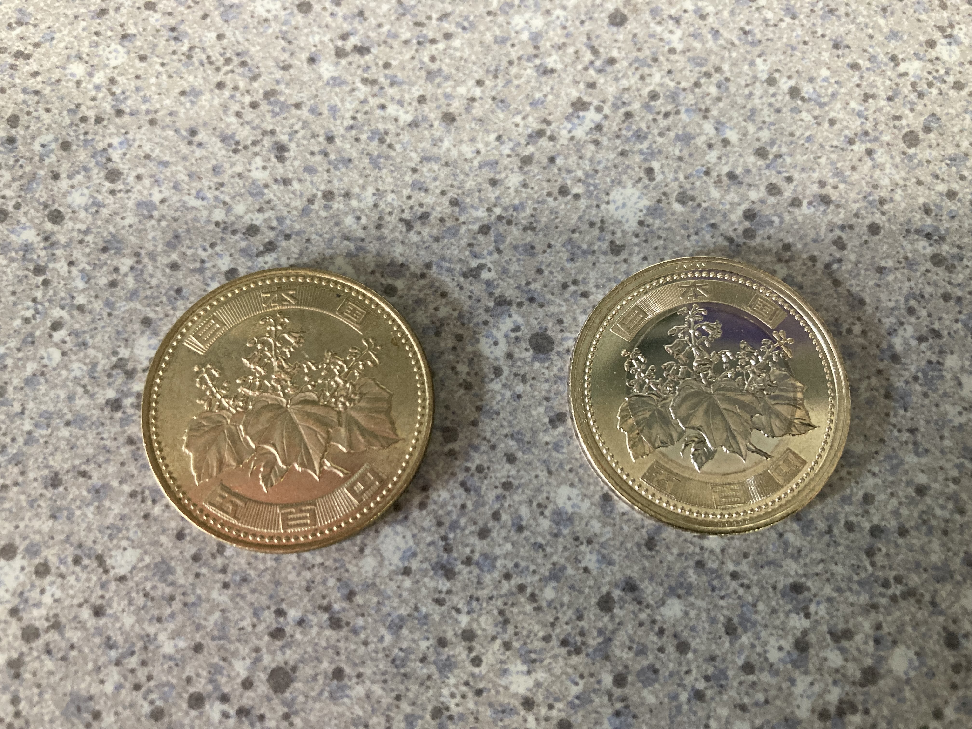 新500円玉だけ見ると何が変わったか分からないけど新旧並べると違いが良く分かる(*^▽^*)
