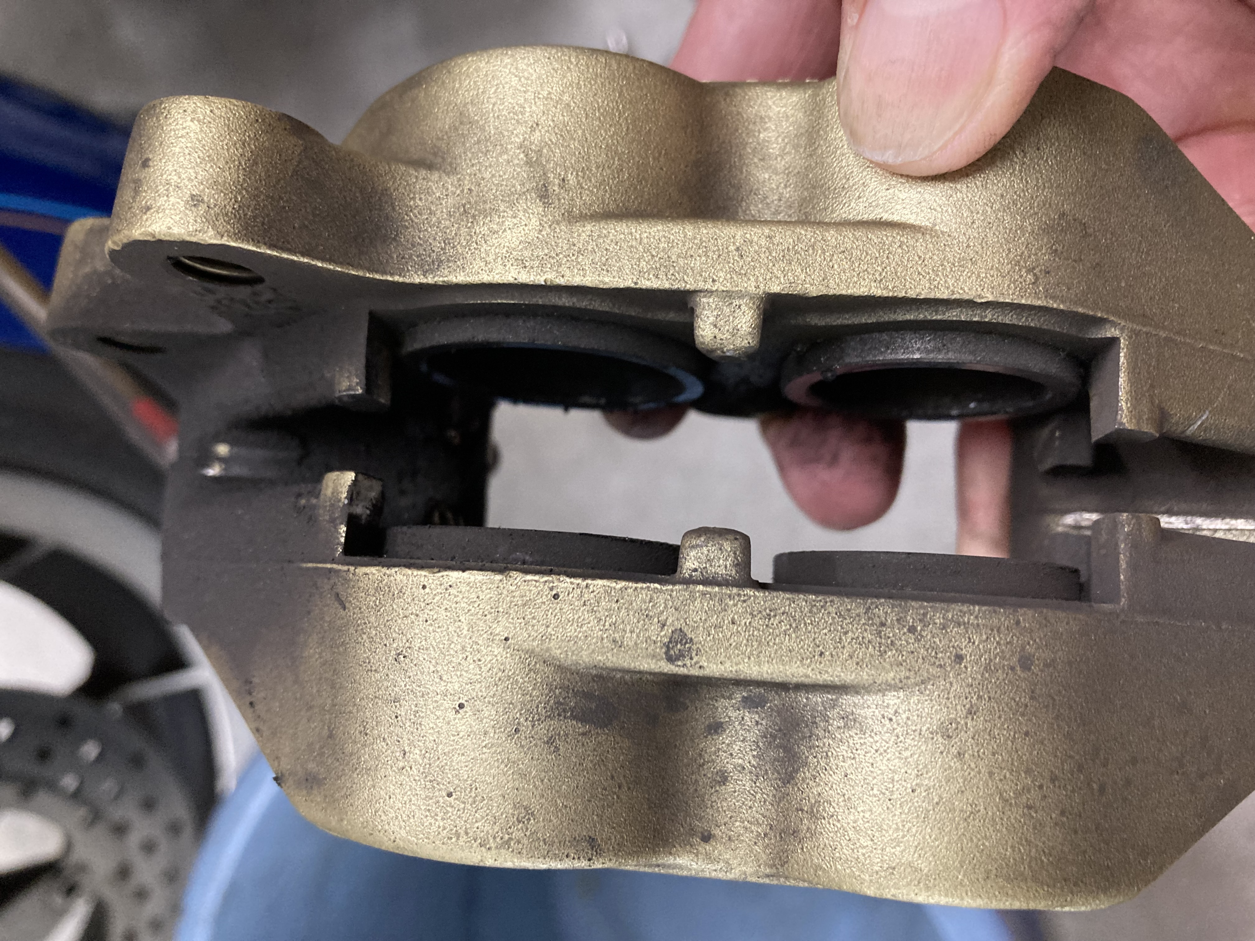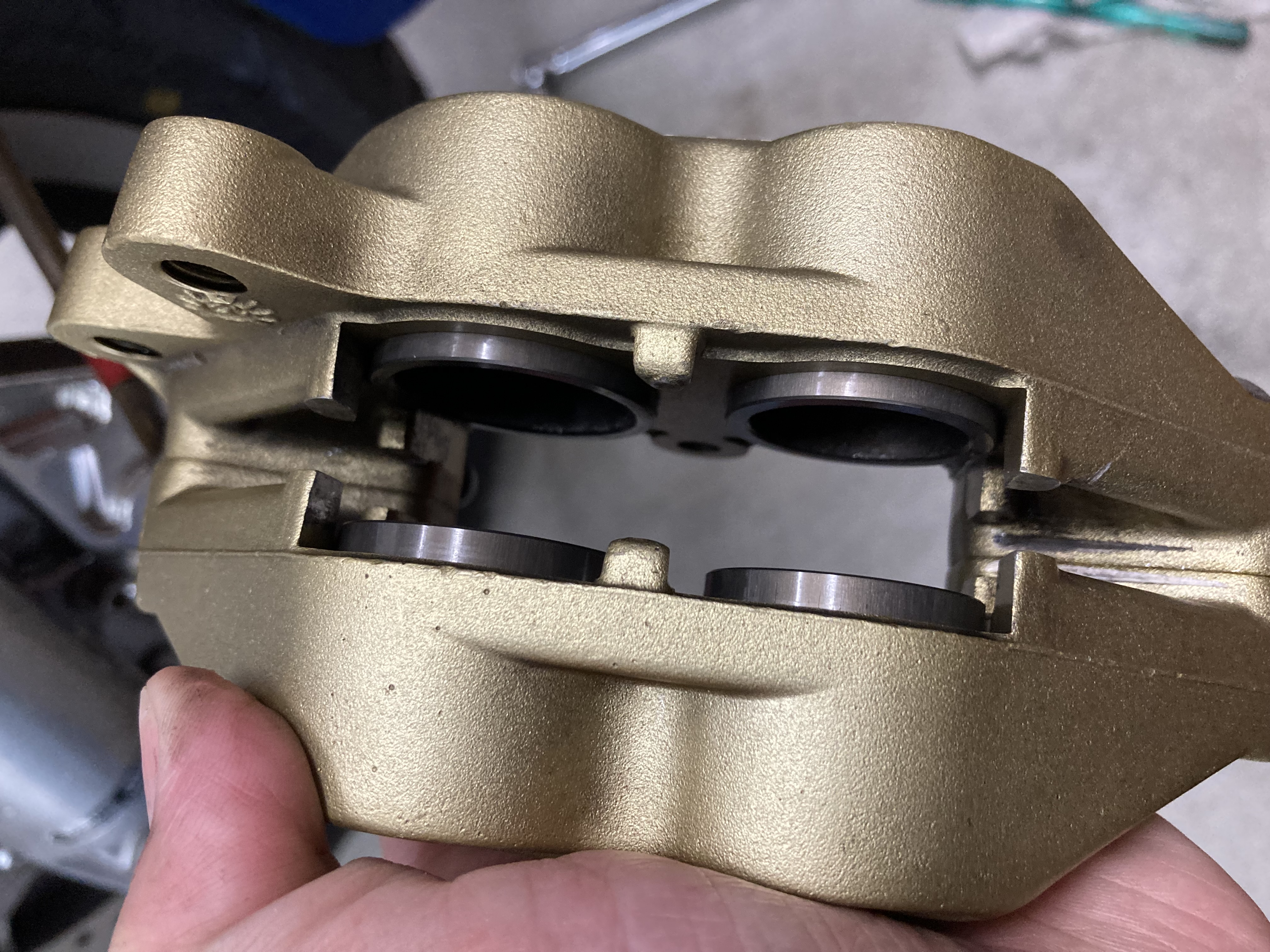 中性洗剤で丸洗いして使い古した歯ブラシでピストン洗いピストンに薄くグリス塗ってピストンの揉み込み、これだけで綺麗になって良く効くブレーキになってくれます(^o^)