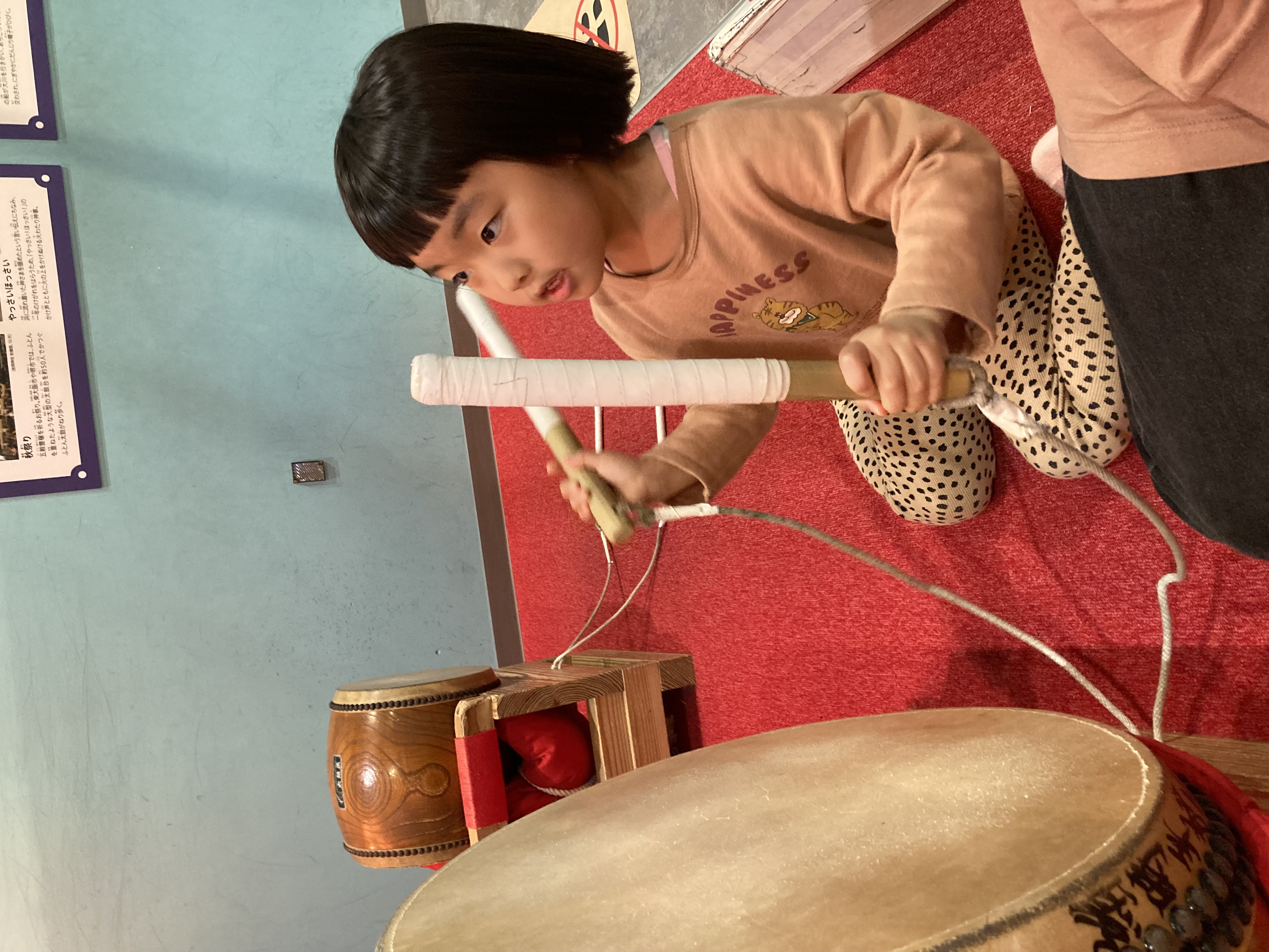 太鼓の達人?祭囃子体験できるとこで熱心に太鼓たたいておりますwww